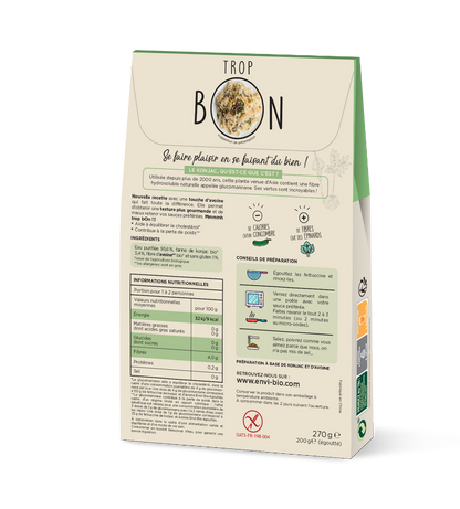 Des pâtes de konjac sans glucides, sans gluten, riches en fibres, aux calories d'une carotte. Un konjac de meilleure qualité, sans odeur, qui rend beaucoup moins d'eau et une texture beaucoup moins caoutchouteuse. Des plats gourmands et rassasiants qui restent légers et healthy.